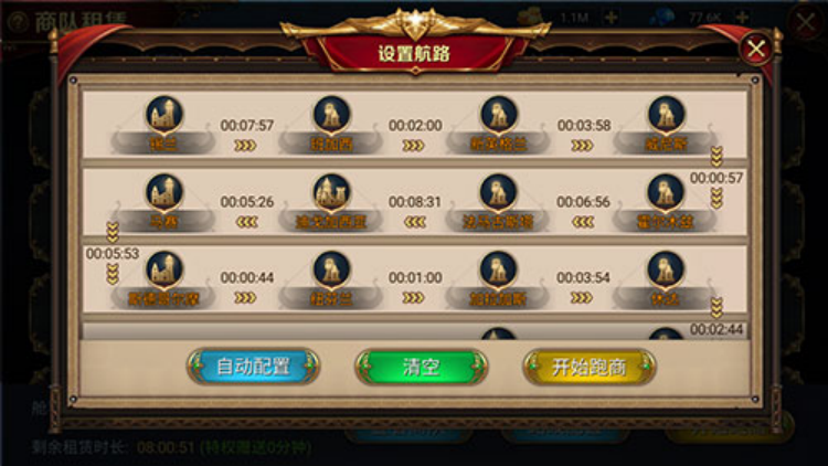 在自动跑商前,你可以选择智能自动配置航路,也能亲自规划专属线路。如何搭配出收益最大化的航线?这就需要发挥你的商业头脑深入研究了!每个港口都藏着特色商品与隐藏热卖路线,不妨化身情报达人,探寻这些财富密码,将它们纳入你的跑商线路,定能收获丰厚回报!